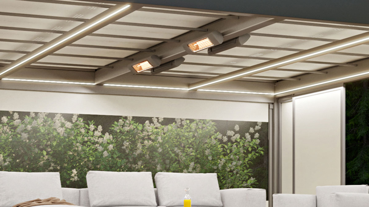 Genießen Sie auch bei niedrigeren Temperaturen und in den Abendstunden Ihren Außenbereich. Der langlebige und energieeffiziente Wärmestrahler ruht in einem geschützten Gehäuse und ist in drei Stufen dimmbar.
